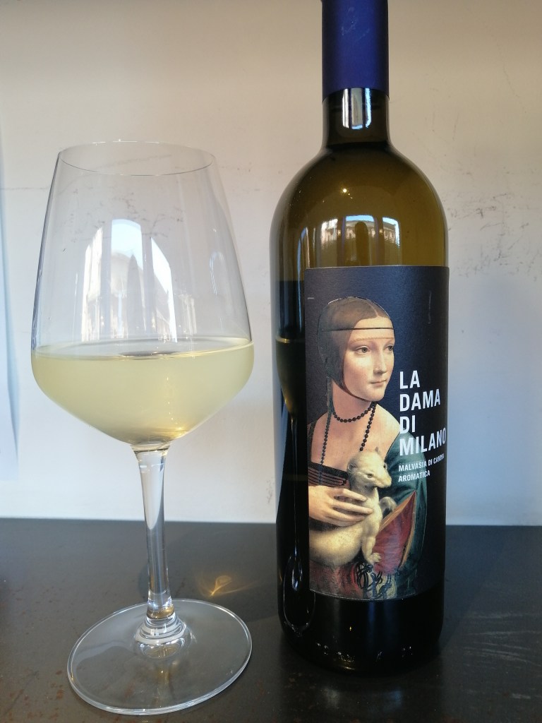 Vinet man får prova här är inte en av de 300 flaskorna, men det är gjort på samma druva och på samma sätt. Det är lite speciellt ändå att få en aning om hur Leonardos vin måste ha smakat. Flaskan har Leonardos vackra målning Damen med hermelinen på sin etikett.