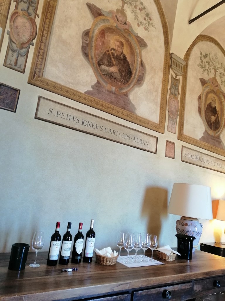 Vi provar flera av hennes olika Frascati viner och även olika årgångar av samma vin. Till slut tar Giulia även fram sitt dessert vin Cannellino di Frascati och till det serverar hon en kaka som är typiskt för detta område gjort på mjöl, socker, olivolja och vin. En perfekt kombination!